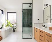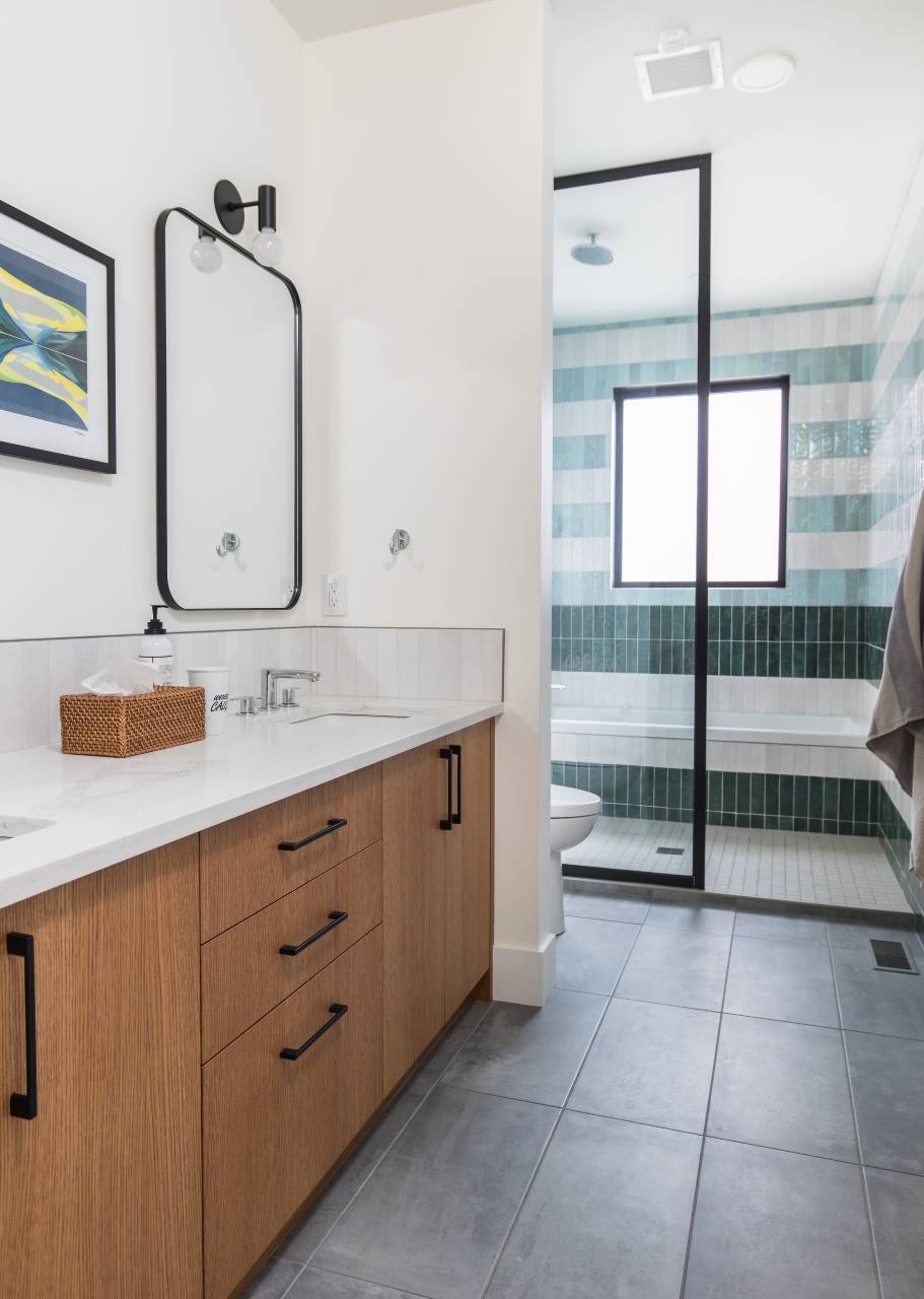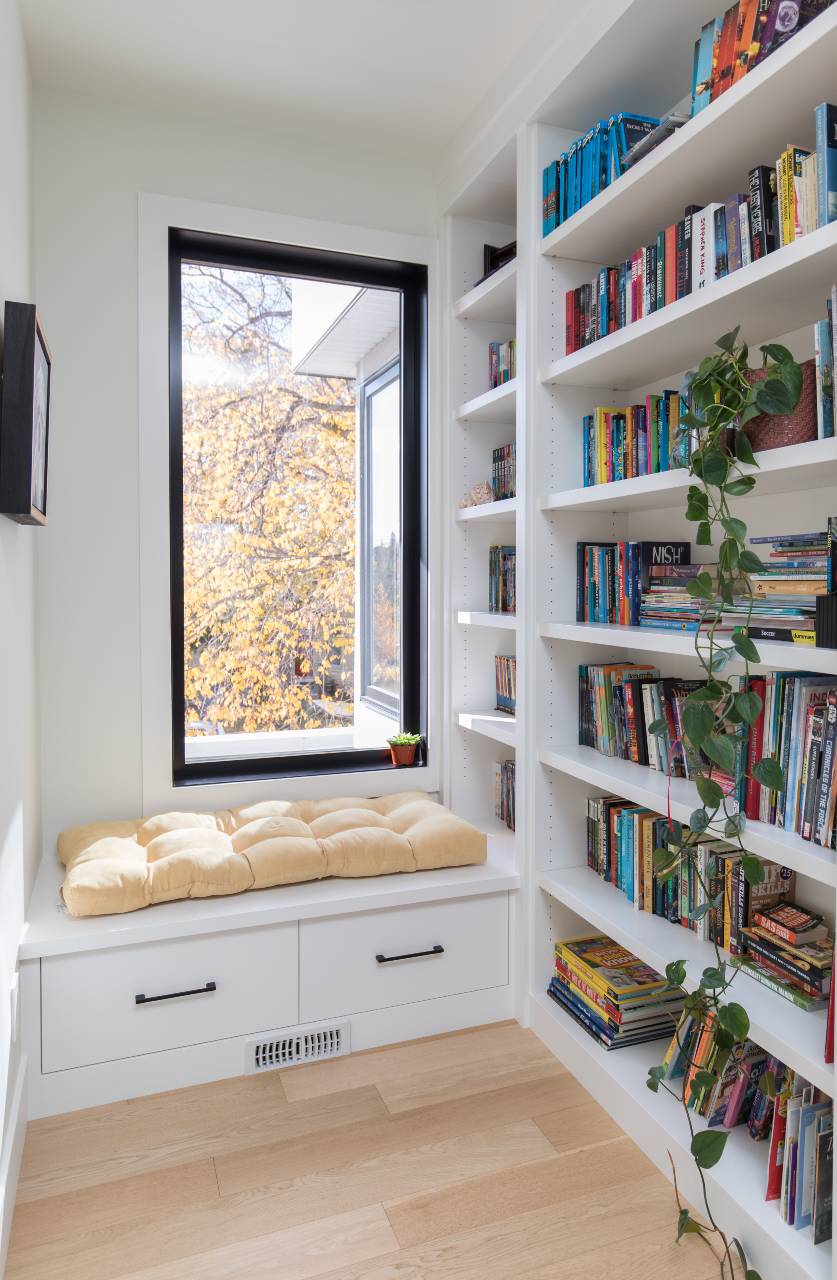 From 2020 to 2022 we had the opportunity to work with this wonderful client building in Altadore. We were so fortunate to help them build their family dream home. They wanted to add some fun pops of color and make it their own. So we implemented green and blue tiles into the bathrooms. The kitchen is extremely fashion forward with open shelves on either side of the hoodfan, and the wooden handles throughout. There are nodes to mid century modern in this home that give it a classic look. Our favorite details are the stair handrail, and the natural flagstone fireplace. The fun, cozy upper hall reading area is a reader’s paradise. This home is both stylish and perfect for a young busy family.