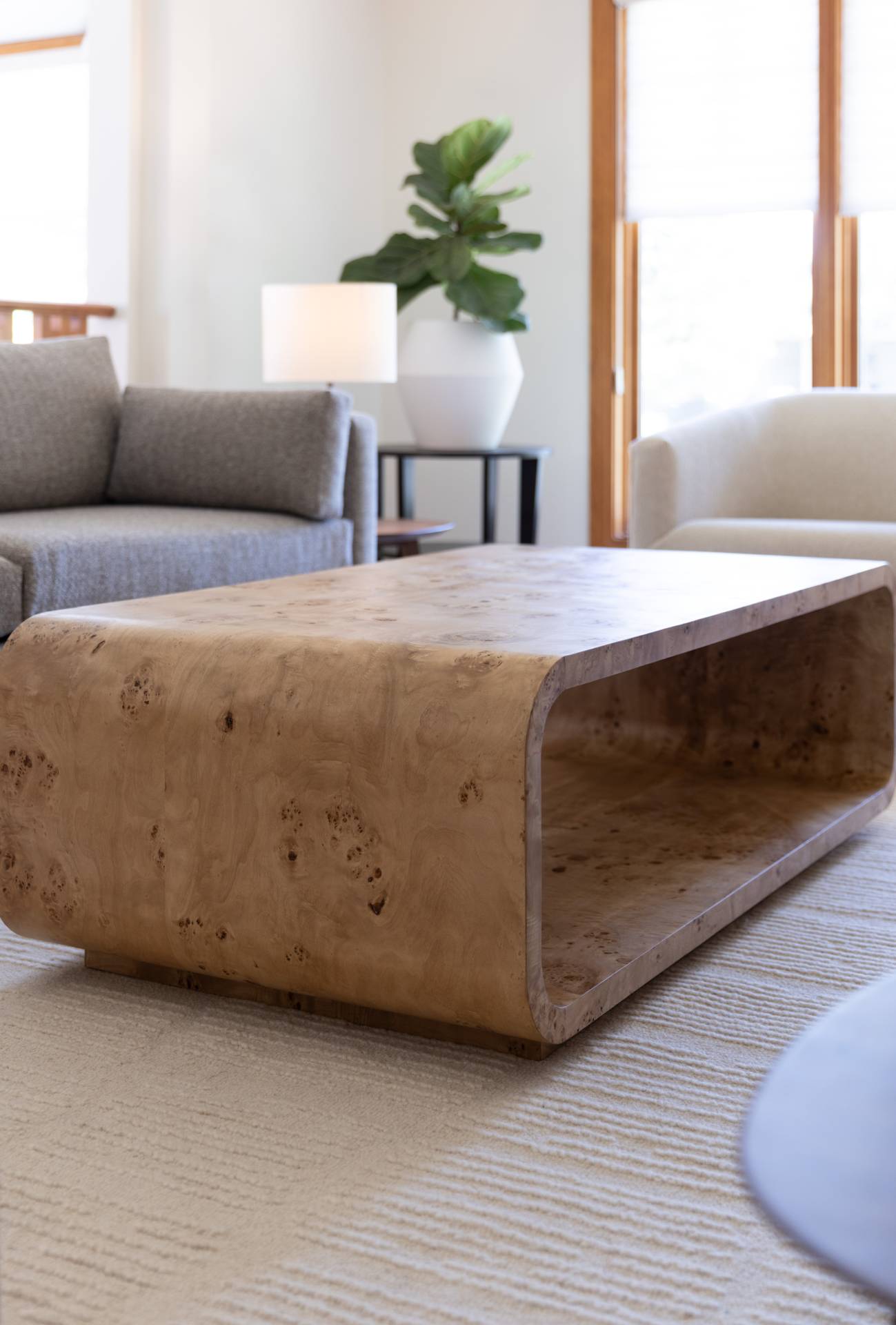 Situated on a generously sized lot, this property boasts both charm and potential. The solid wood baseboards, a hallmark of mid-century modern design, were retained and highlighted, reinforcing the home’s architectural heritage. To complement these classic details, carefully selected sculptural furniture pieces were introduced. These additions not only pay homage to the era in which the home was built but also help to blend new elements seamlessly with the existing architecture, creating a sense of timelessness.